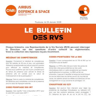 Chaque trimestre, vos Représentants de la Vie Sociale (RVS) peuvent interroger la Direction sur des questions d’ordre collectif ou réglementaire. Voici la collection des réponses reçues récemment.